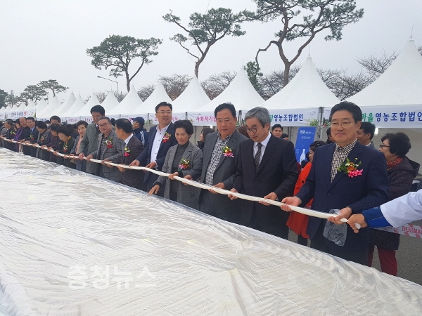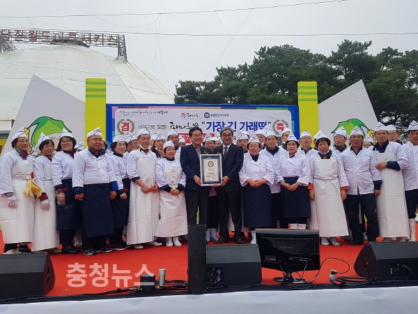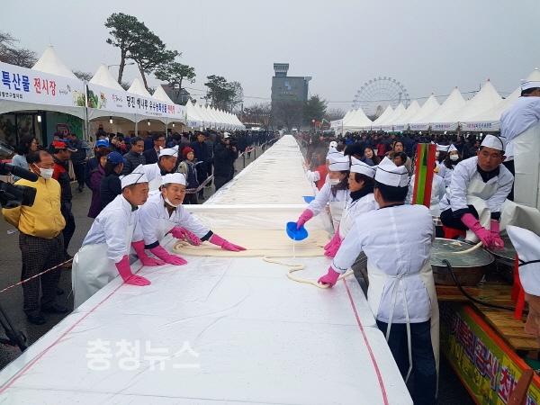 11일 당진시 신평면 삽교호 관광지 일원에서 열린 당진해나루쌀‧농특산물대축제에서 '우리나라에서 가장 긴 가래떡' 만들기에 성공했다.