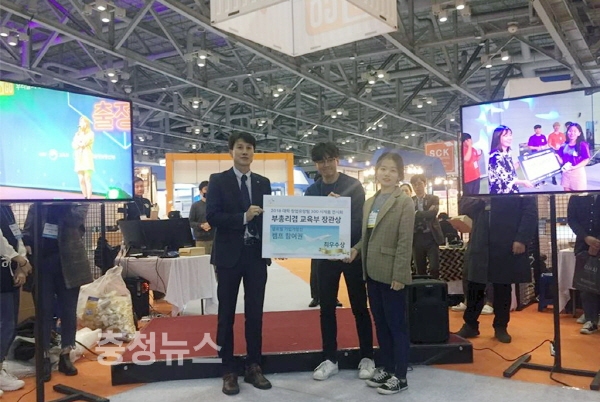 교육부와 부산시가 공동개최한 ‘2018 산학협력 EXPO-세상을 움직이는 산학협력 엑스포’가 지난 11월 7일~9일, 부산 벡스코에서 열린 가운데 ‘창업유망팀 300 시제품 전시회’에서 충남대 학생기업인 ‘어바웃프레임’이 최우수상인 부총리겸교육부장관상을 수상했다.