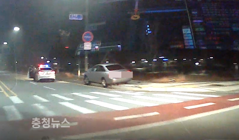 B씨는 A 치킨집 앞 노상에 주차해 놓은 승용차를 충격 후 내포방면으로 도주했다. 이를 목격자(택시기사)가 추격하면서 112에 신고한 것.