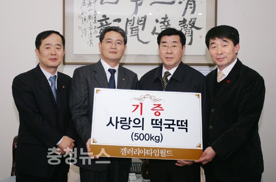 갤러리아 타임월드(점장 함태영)에서는 고유의 명절인 설을 맞아 지역사회의 기부문화 확산을 통한 따뜻한 사회분위기를 조성하고 서로 함께 나누며 사는 미풍양속의 계승 발전에 앞장서기 위해 12일 가기산 서구청장을 방문해 「사랑의 떡국떡」500㎏을 지정 기탁했다.