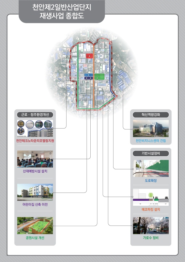 장호영 기업지원과장은 “이번 지방재정 중앙 투자 심사 통과로 천안 제2일반산업단지 재생사업에 탄력을 받을 전망이며, 산단의 고질적 문제인 진입도로와 주차문제 해소, 근로여건 개선과 산단의 구조고도화를 통한 경쟁력 강화로 지속적인 신성장 동력 창출에 크게 기여할 것으로 기대한다”고 말했다.