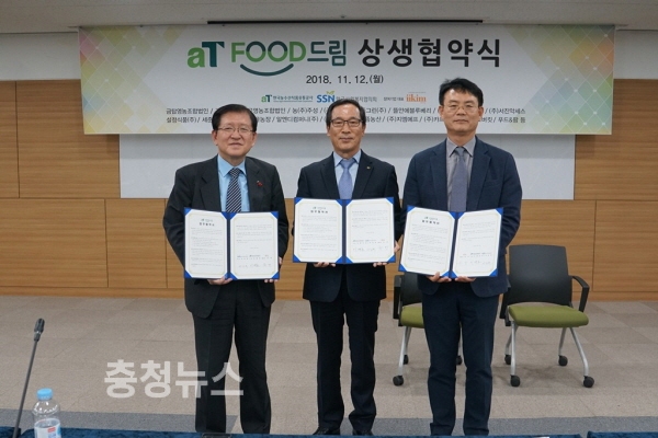 한국농수산식품유통공사(aT, 사장 이병호)는 지난 12일 aT센터에서 지속가능한 농수산식품 기부 체계 구축을 위해 농수산식품 기업들, 한국사회복지협의회(회장 서상목)와 삼자간 협약을 체결했다.