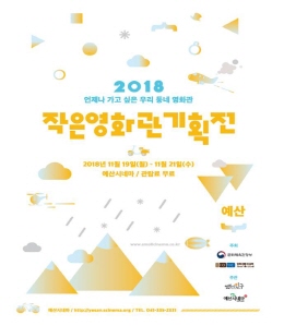 충남 예산군은 오는 19∼21일 3일간 예산시네마에서 ‘2018 작은영화관 기획전’을 개최한다고 14일 밝혔다.