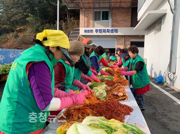 김복자 제원면 새마을 남녀지도자 회장은 “많은 양의 김장담그기로 몸은 피곤하지만 정성스럽게 만든 김치가 어려운 이웃에게 전달돼 조금이나마 도움이 될 수 있다는 생각에 큰 보람을 느낀다”고 말했다.