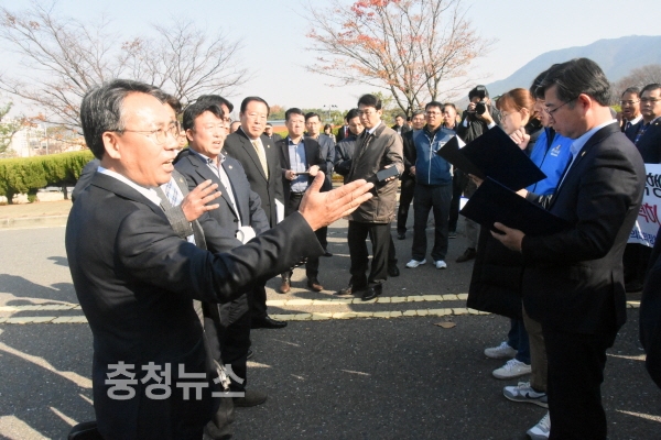 이날 공대위의 성명서 낭독에 도의회 행안위 위원들과 신경전이 고조되면서 일부 충돌도 발생했다.