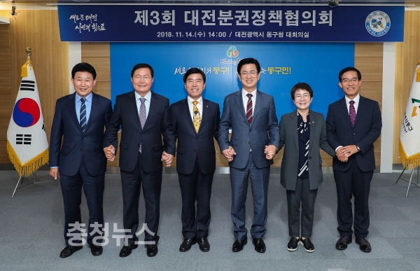 시는 14일 허태정 시장과 5개 구청장이 모여 ‘제3회 대전분권정책협의회’를 열고 겨울철 도로제설에 대한 시-자치구간 효율적인 업무분담 방안 등에 대해 협의했다.