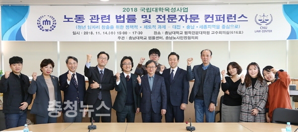 충남대 법률센터(센터장 손종학 교수)는 14일 법학전문대학원에서 충남노사민정협의회와 공동으로 ‘노동 관련 법률 및 전문자문 컨퍼런스’를 개최했다.