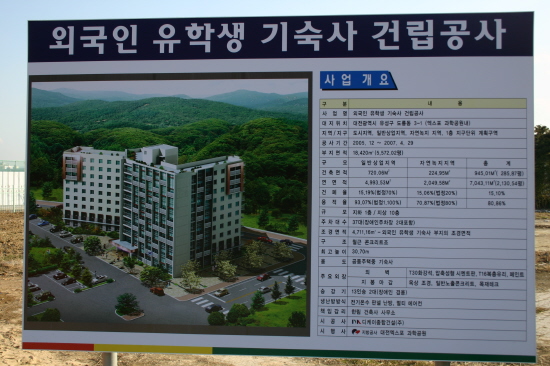 체력단련실, 세탁실, 공동취사실 등을 갖추고 있어 외국인 유학생 450명이 생활하게 된다.