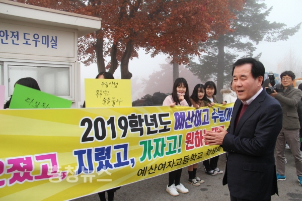 김지철 교육감과 황선봉 예산군수는 이날 오전 7시경부터 예산여고 앞에서 수험생과 학부모, 교사 등 관계자들을 격려했다.