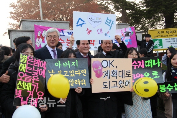 김 교육감은 “학생들 모두 고생한 만큼, 노력한 만큼 결과가 나오길 바란다. 그동안 뒷바라지 하느라 고생하신 부모님께 감사드리고 수능이 끝나고 남은 학교 생활도 잘 마무리하길 바란다”고 말했다.