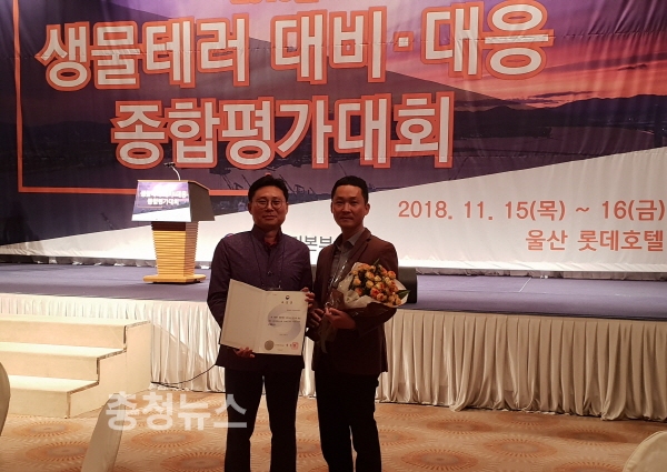 충남 당진시보건소가 15일 롯데호텔 울산에서 열린 2018년 생물테러 종합평가대회에서 우수기관으로 선정돼 '보건복지부장관상'을 수상했다.
