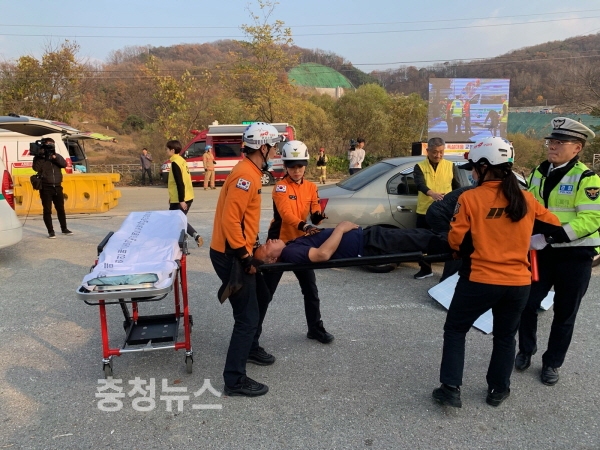 훈련은 제설차량과 구급차 등 29여대의 장비를 동원해, 설정된 폭설상황에 따라 상황전파, 인명구조, 제설작업, 사고차량구호, 교통통제 및 우회도로 유도 등의 내용으로 진행됐다.
