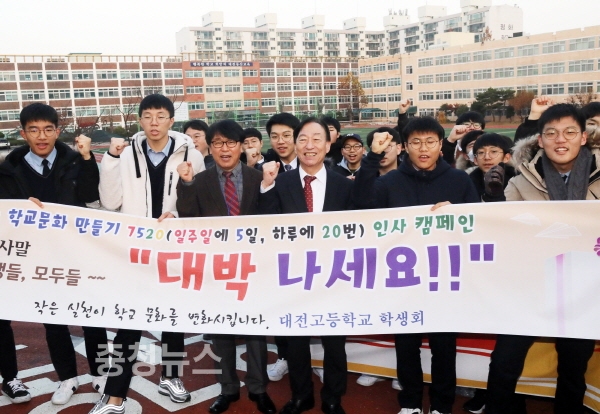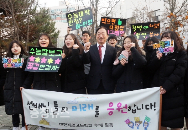 설동호 교육감은 15일 수능 당일 아침, 대전동산고와 대전복수고 등 2개교를 방문해 수험생들을 응원했다.
