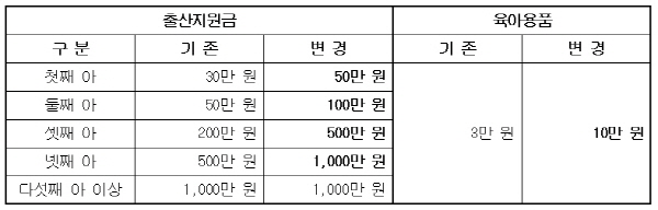 시는 소급적용을 받는 아이들의 가정에 출산지원금과 육아용품 교환권 지급 관련 안내문을 송부해 변경 지급되는 사항을 홍보할 계획이다.