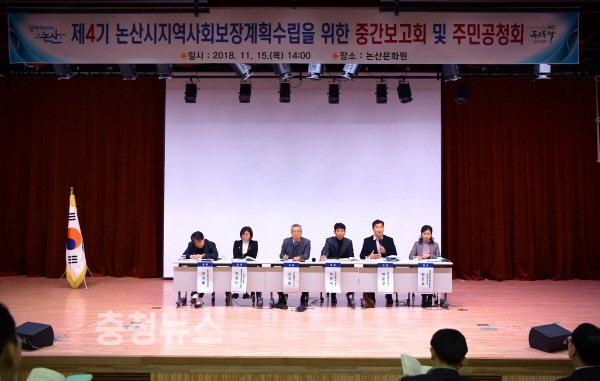 충남 논산시(시장 황명선)는 지난 15일 문화원 다목적홀에서 제4기 지역사회보장계획 수립을 위한 중간보고회 및 주민공청회를 개최했다.