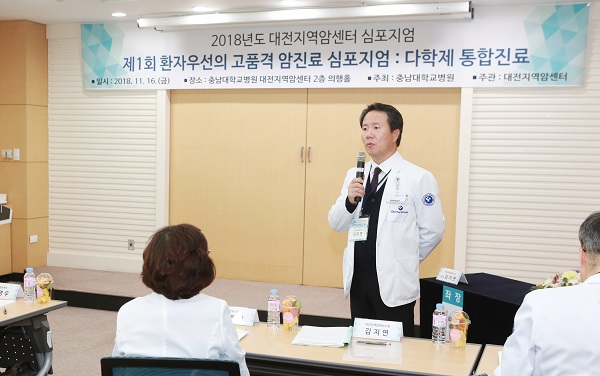 충남대병원 대전지역암센터(소장 김지연 외과 교수)는 16일 오후 암센터 2층 의행홀에서 다학제 통합진료를 주제로 제1회 고품격 암진료 심포지엄<사진>을 개최했다.