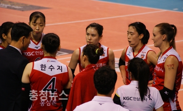 KGC인삼공사는 18일 오후 4시 대전 충무체육관에서 열린 도드람 2018~2019 V-리그 2라운드 흥국셍명과 홈경기에서 0-3(22-25, 23-25, 21-25) 완패했다.