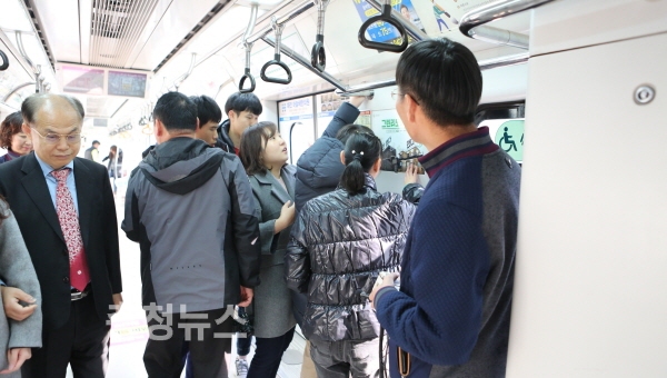 19일 판암차량기지에서 대전맹학교 25명 전동차 시승, 비상시 탈출요령 체험