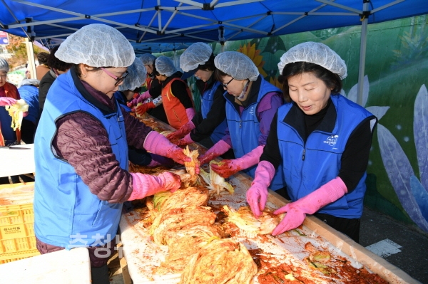 충남 예산군 여성단체협의회(회장 박금선)가 19∼20일 2일간 100여 명의 회원이 참여한 가운데 ‘사랑의 김장 나누기’ 행사를 실시했다.