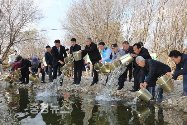 충청남도에서 실시하는 생태계서비스 시범사업의 일환으로 금산군이 주최하고 ‘금산환경을 사랑하는 사람들’(대표 이조천)이 주관한 이날 행사에는 문정우 군수를 비롯한 100여명의 주민들이 참여해 토종 어족자원 보호에 동참했다.