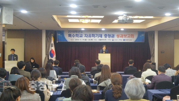 대전시교육청(교육감 설동호)은 지난 19일부터 20일까지 1박 2일간, 호텔인터시티에서 중부권 특수교사 250여명이 참석한 가운데 ‘2018 특수학교 자유학기제 충청권 성과보고회’를 실시했다.