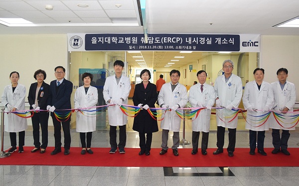 을지대병원은 20일 오후 담석증, 췌장염 등 췌담도질환을 다각적으로 진단, 치료할 수 있는 췌담도 내시경실 확장 개소식을 가졌다.