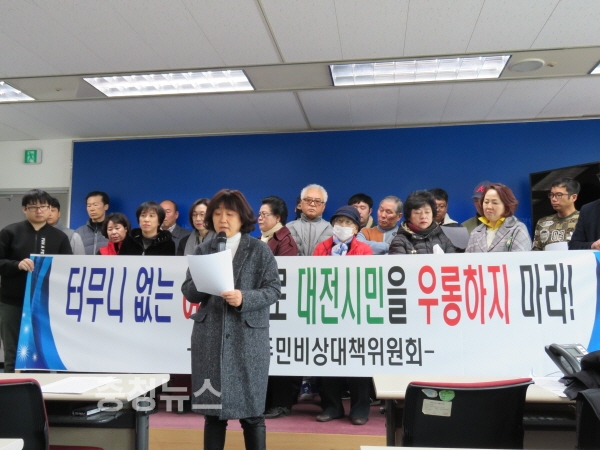 비대위는 “대전시로부터 10월에서 12월까지는 도시계획위원회를 진행할 것이라 연락받은 뒤, 언론을 통해 보류됐다는 얘기를 알게됐다”며 “12월까지 도시계획위원회를 진행하지 않으면, 업무태만으로 대전시를 감사원에 제소할 생각”이라고 경고했다.