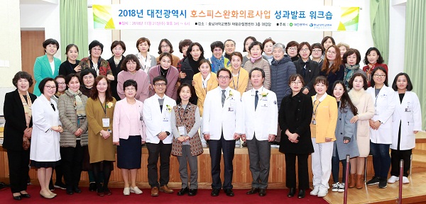 충남대병원 권역호스피스센터(센터장 윤석준, 가정의학과 교수)는 21일 관절염·재활센터 3층 대강당에서 '2018년 가정형 호스피스 중심 호스피스완화의료사업 성과 발표 워크숍'을 개최했다.