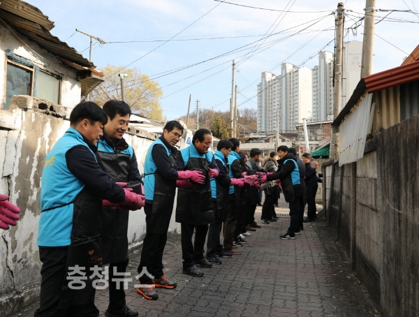 대전도시공사는 지난 23일 오후 대전시 동구 천동 일원에서 노사가 함께 하는 사랑의 연탄배달 봉사활동을 전개했다. 도시공사 노사는 천동일원의 독거노인과 수급자 등 30세대에 6천장의 연탄을 기증하고 어려운 이웃들의 따뜻한 겨울나기를 기원했다.