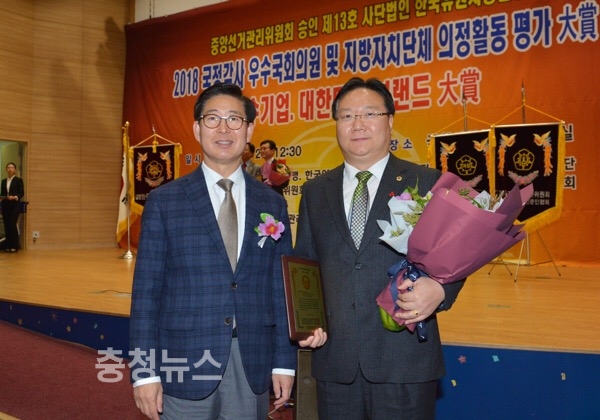 충남도의회 유병국 의장은 24일 국정감사 및 시도행정자치단체장활동 평가 대상에서 지방자치단체 의정활동평가 대상을 수상했다.