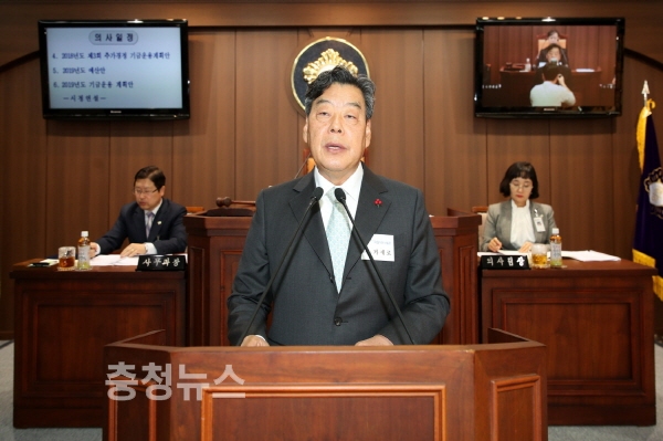 가세로 태안군수가 지난 26일 태안군의회 본회의장에서 열린 ‘제256회 태안군의회 정례회’에서 2019년도 시정연설을 통해 미래 성장 동력 확보와 군민 중심 행정 실천 등 내년도 군정운영 각오를 밝혔다.