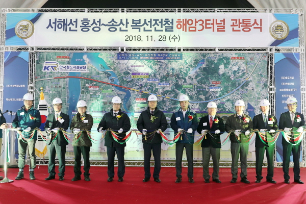 한국철도시설공단(이사장 김상균)은 충청남도 홍성군과 경기도 화성시 송산동을 연결하는 서해선 복선전철 건설사업 18개 터널 가운데 가장 긴 해암3터널(4.748km)을 관통하고 28일 기념행사를 개최했다고 밝혔다.