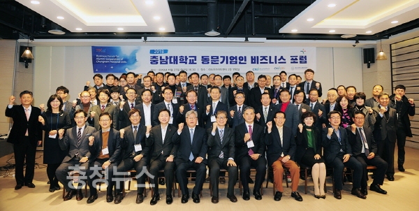 충남대 LINC+사업단과 창업재단, 총동창회는 산학협력 활성화를 위해지난 27일 유성 라도무스아트센터에서 ‘충남대학교 동문기업인 비즈니스 포럼’을 개최했다.