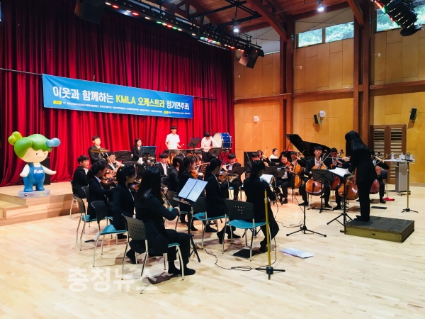 지난 8월 강원 횡성군 둔내면 국립횡성숲체원 대강당에서 개최한 '민족사관고등학교 오케스트라 공연' 모습.