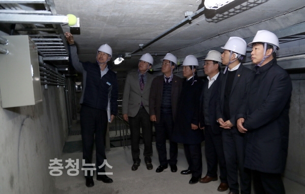대전시의회 산업건설위원들이 둔산 공동구를 점검하고 있다.