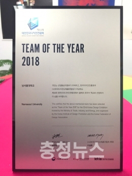남서울대학교(총장 윤승용) 시각정보디자인학과 학생들이 국내 최고 권위를 자랑하는 ‘제53회 대한민국 디자인 전람회’에서 출전 대학 중 1위로 ‘팀 오브 더 이어 2018’상을 수상했다고 2일 밝혔다.
