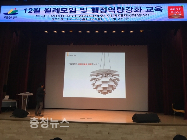 충남 예산군이 지난 3일 군청 추사홀에서 직원 300여 명을 대상으로 12월 월례모임 및 행정역량강화 교육을 실시했다.