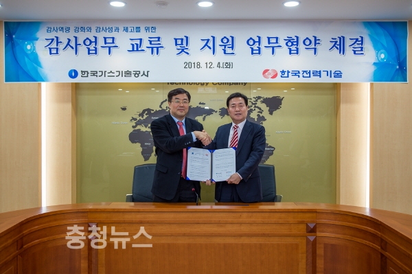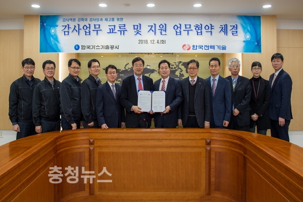 한국가스기술공사와 한국전력기술은 4일 한국가스기술공사 본사에서 한국가스기술공사 박상배 상임감사와 한국전력기술 이동근 상임감사가 참석한 가운데 '감사업무 교류 및 지원에 관한 협약'을 체결했다.