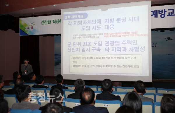 군은 지난 4일 군청 대강당에서 가세로 군수를 비롯, 군 직원 등 300여 명이 참석한 가운데 ‘태안군 정책연구단 연구과제 발표회’를 열었다.