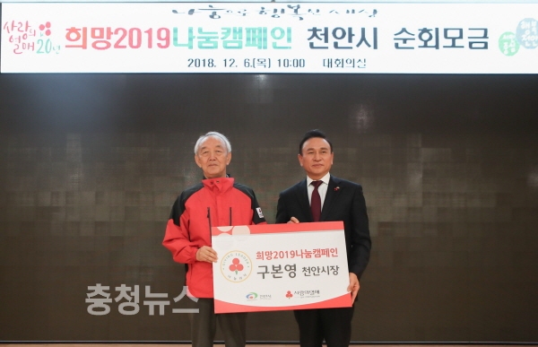 구본영 천안시장이 충남사회복지공동모금회 나눔리더에 가입하고 사랑의 온도탑을 높이는 데 앞장섰다.