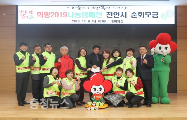 충남사회복지공동모금회(회장 이관형)가 주최하고 천안시가 후원하는 희망2019나눔캠페인 천안시 순회모금행사가 6일 오전 10시 시청 대회의실에서 열렸다.