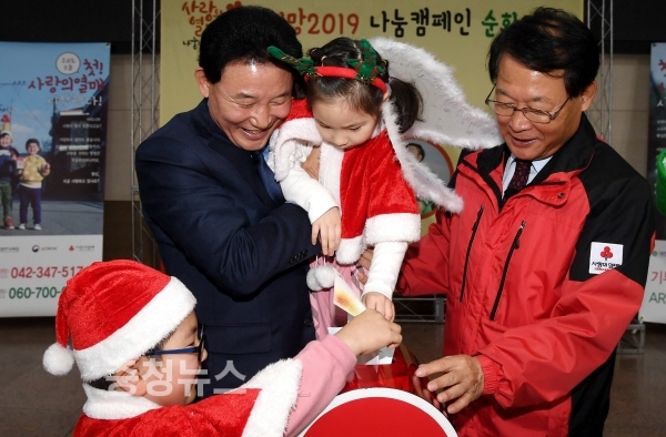 대전 중구(구청장 박용갑)는 지난 5일 연말연시를 맞이해 어려운 이웃에게 희망을 전달하기 위한 ‘희망!2019 나눔캠페인 순회모금’ 행사를 구청 대회의실에서 개최했다.