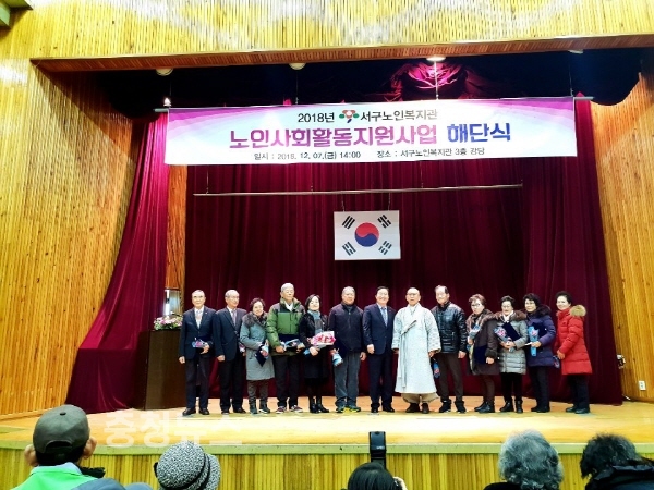 서구노인복지관(관장 : 장곡스님)에서는 7일(rma) 3층 강당에서 노인사회활동지원사업 참여어르신 370여명과 주요 내빈이 참석한 가운데 2018년 노인사회활동지원사업 해단식을 진행했다.