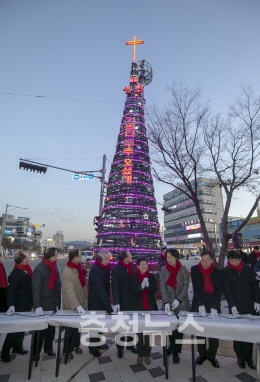 대덕구 기독교협의회(회장 김덕창)는 지난 8일 중리네거리 교통섬에서 대형 성탄 트리 점등식을 가졌다.