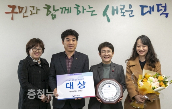 보건복지부 주관으로 지난 10일 세종컨벤션센터에서 열린 2018년 복지행정상 시상식에서 대덕구는 2018년 지역복지사업 사회보장급여 점검·관리 분야에서 대상을 수상하고 포상금 1500만원을 받았다.