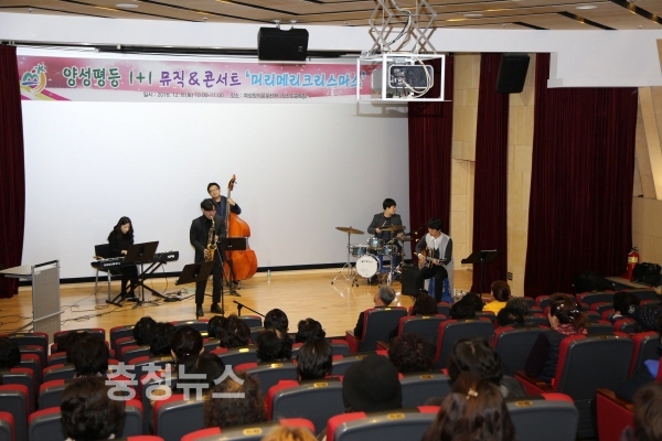 충남 금산군은 지난 10일 여성창의문화센터 8층에서 공무원과 주민 120여명이 참석한 가운데 양성평등 문화확산을 위한 양성평등 1+1 뮤직콘서트를 열었다.