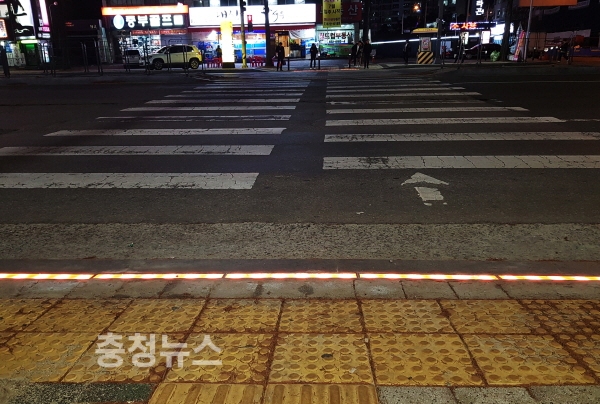 대전 유성구(구청장 정용래)가 야간 교통사고 예방을 위해 횡단보도 21개소에 LED집중조명시설 또는 바닥조명을 설치했다고 11일 밝혔다.