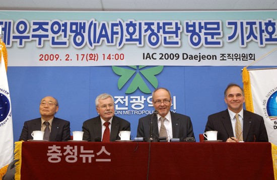 17일 오후 IAC 준비상황을 점검한 IAF회장단은 대전시청 브리핑룸에서 기자회견을 열었다.