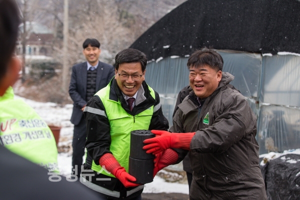 이날 김돈곤 군수와 윤일근 지부장을 비롯해 군 공무원 및 농협 관계자 총 20여명은 청양읍 교월리에서 추운 날씨에도 불구하고 500장의 연탄을 직접 배달해 따뜻한 온기를 함께 전달했다.