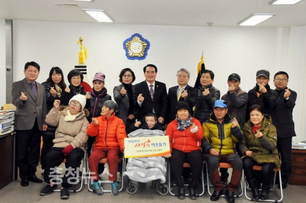 서명석 의장은 “어려운 경제여건으로 우리 주변의 소외된 이웃들의 가슴에도 혹독하고 차가운 한파가 몰아치고 있다”며 “작은 정성이지만 중증장애인 여러분께서 긴 겨울을 이겨나가시는데 조금이나마 보탬이 됐으면 좋겠다”고 답했다.